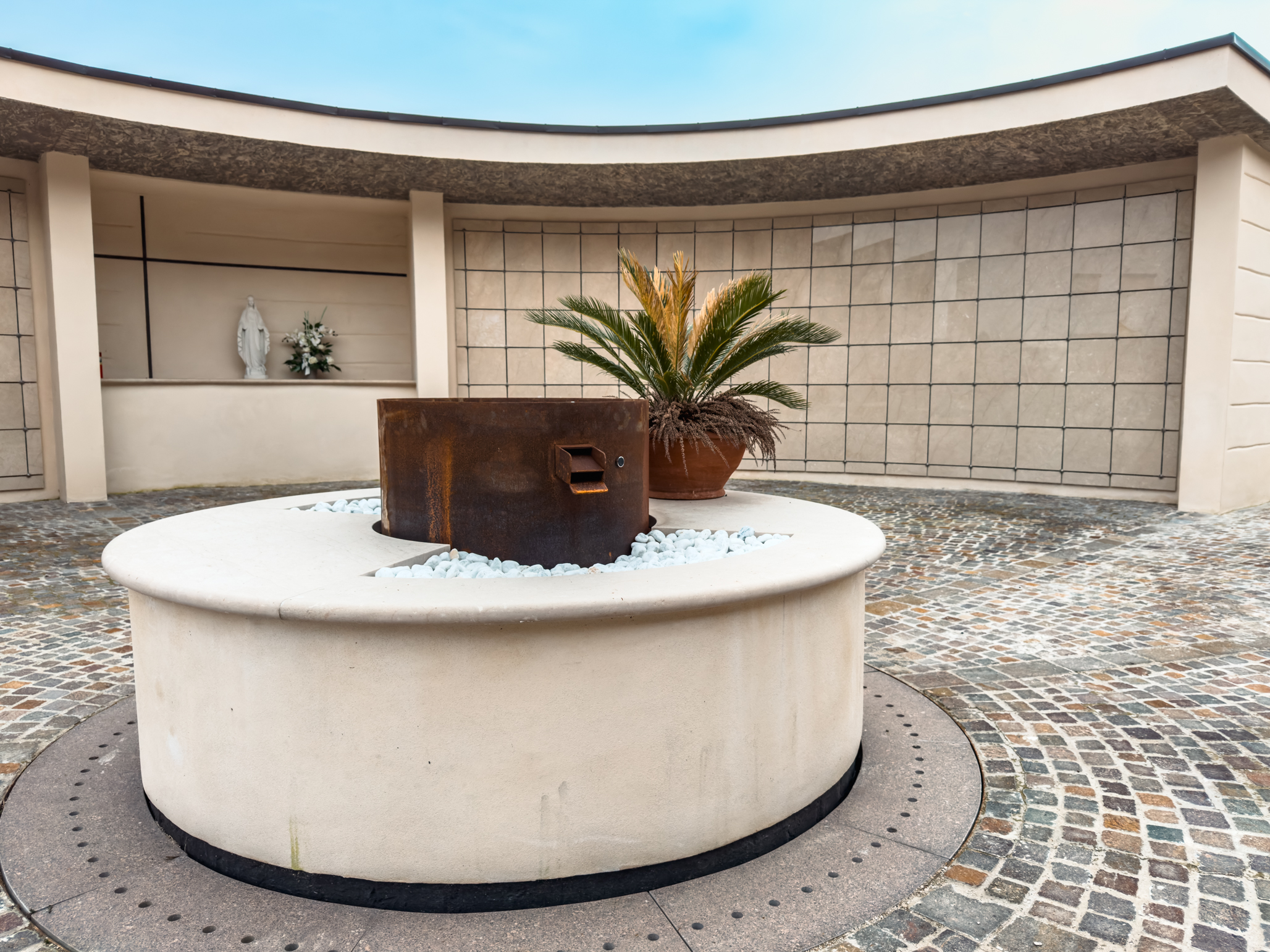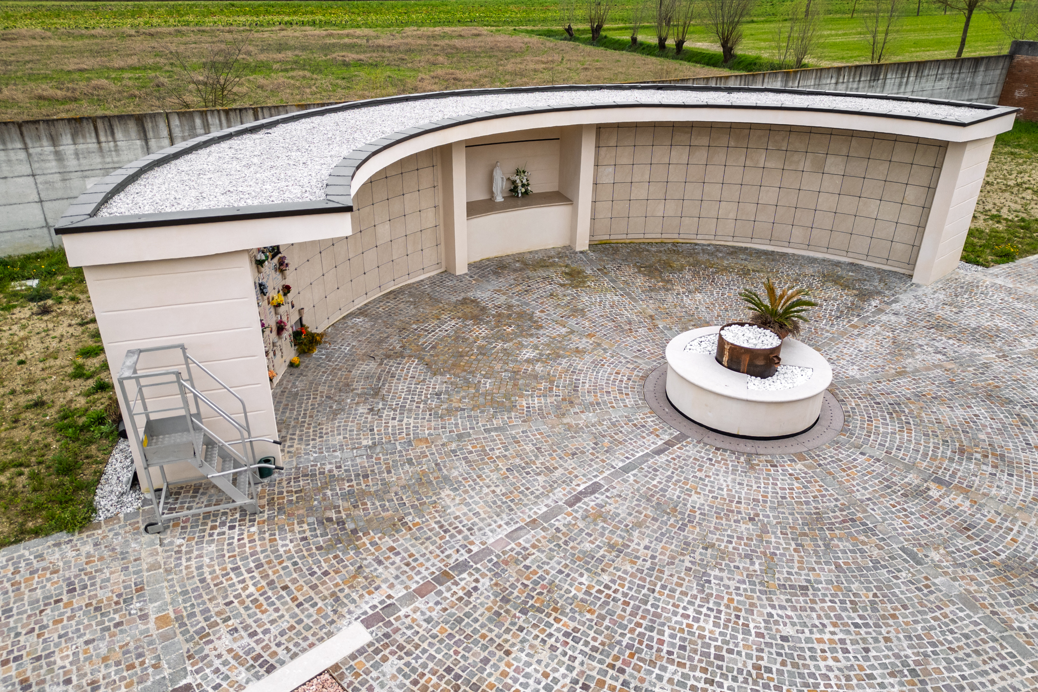 IA2 Buildings ha realizzato il nuovo cinerario con area dedicata alla dispersione delle ceneri presso il cimitero di Zianigo, nel Comune di Mirano.
